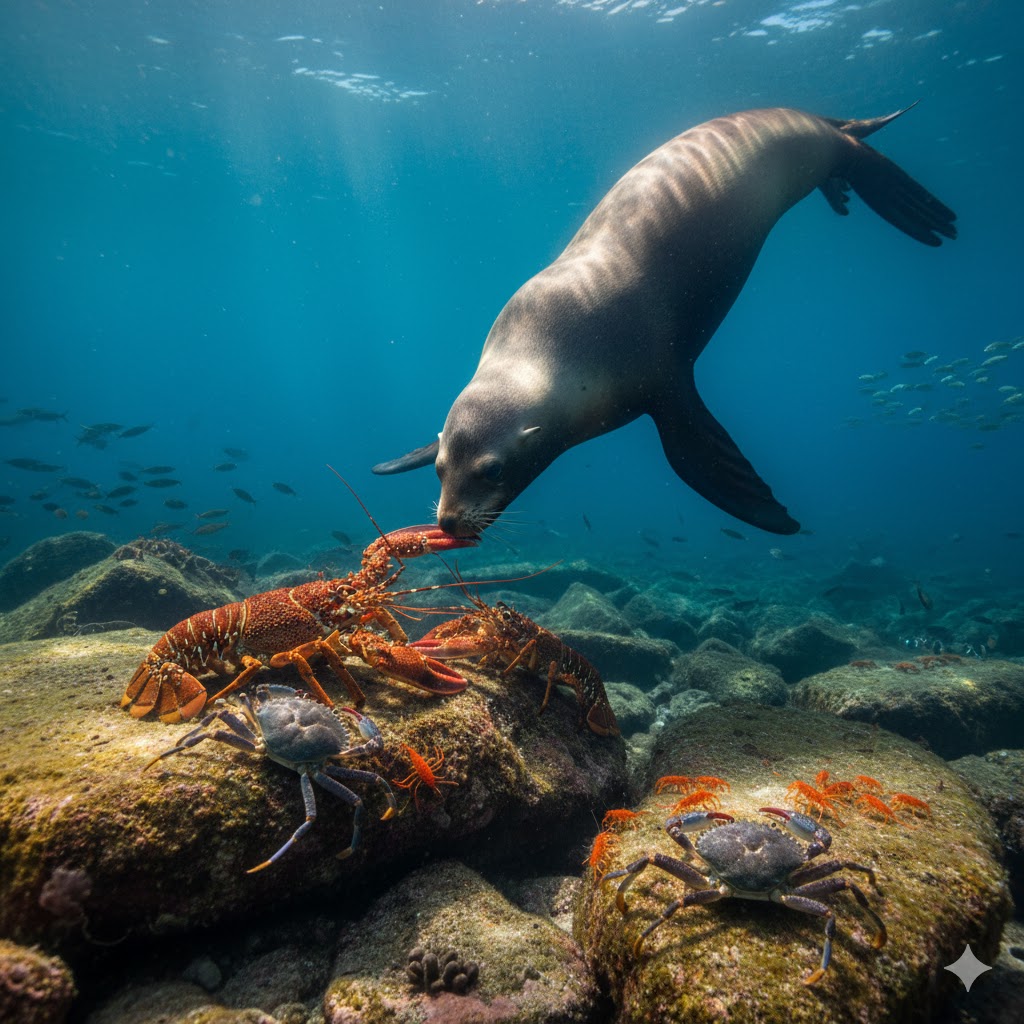 Singa Laut Melawan Gurita: Pertarungan di Dasar Lautan Pasifik Gambar menakjubkan ini mengabadikan momen dramatis dari rantai makanan di bawah